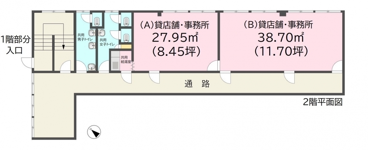 ・トイレ、給湯室は他の入居者及び関係者との共用施設となります。アイプラザ2階北側の案内図-